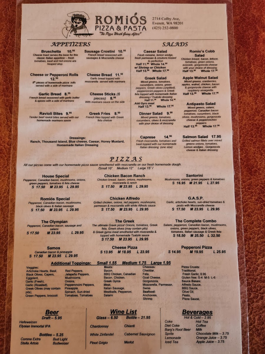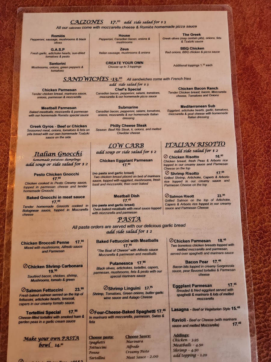 Romio's Pizza & Pasta Menu